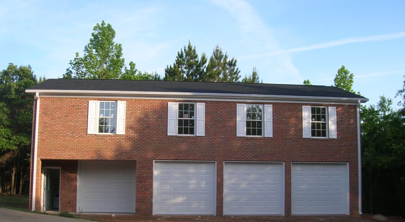 Here is a front view of the newly added multiple car garage. Tim uses the lower level to work on his bicycles and antique cars. The upper level is for other hobbies including musical instruments, model trains and a sewing area especially for Guadalupe.